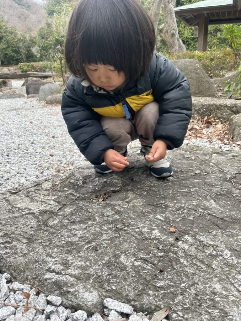 この黒いのはなにー?って言いながら一つずつとってた。私も知らないけど、たくさん落ちてるんだよね。こういう実